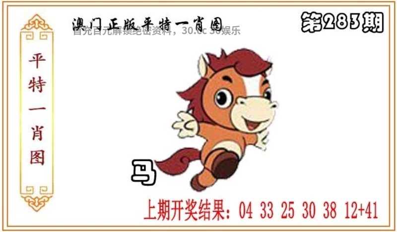 282期:九肖 | 马虎龙猴兔羊猪牛狗 | 开:牛41中 |